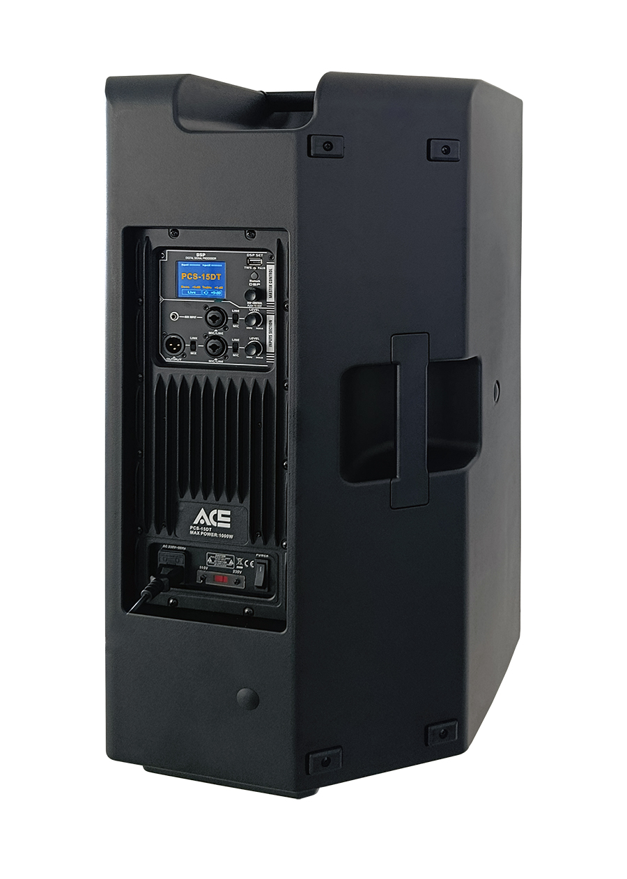 Aktivní 15" dvoupásmový digitální D-class reprobox s moderním designem a výkonným zesilovačem s maximálním výkonem až 1000 W. Vyroben je z ABS.